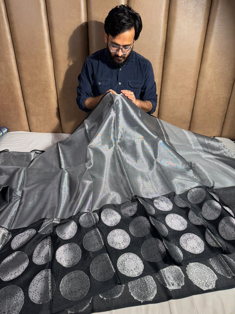 Banarasi crush tissue silk saree with rich pallu and blouse