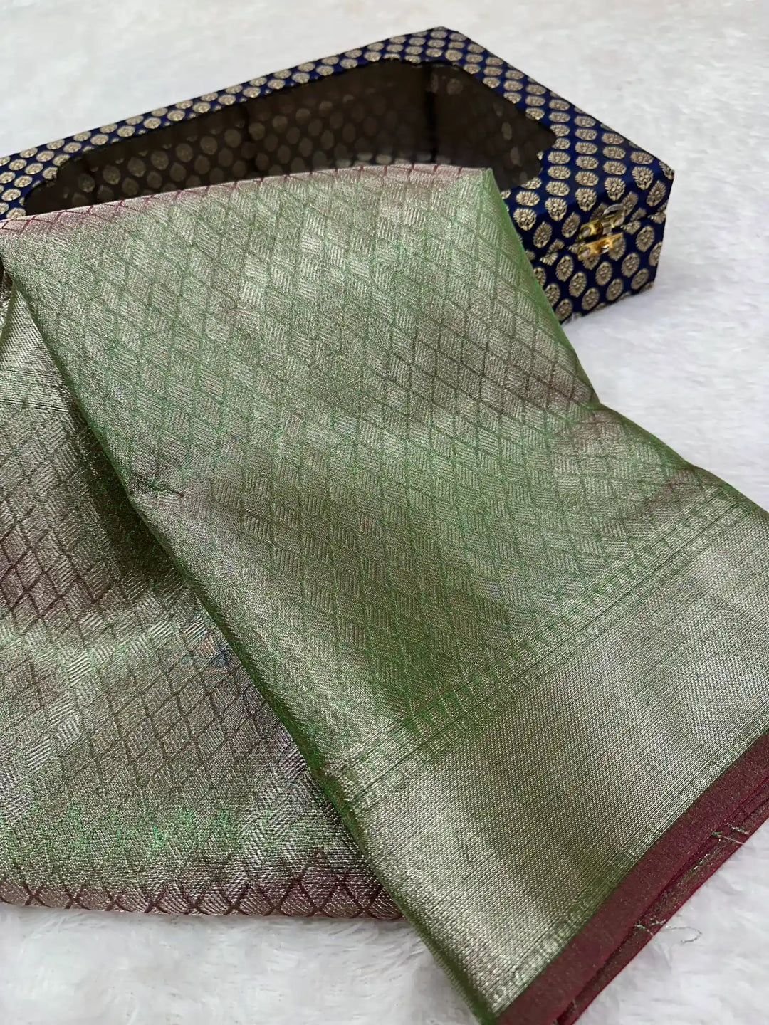 Metallic Green Soft Tissue Silk Jacquard Banarasi Saree