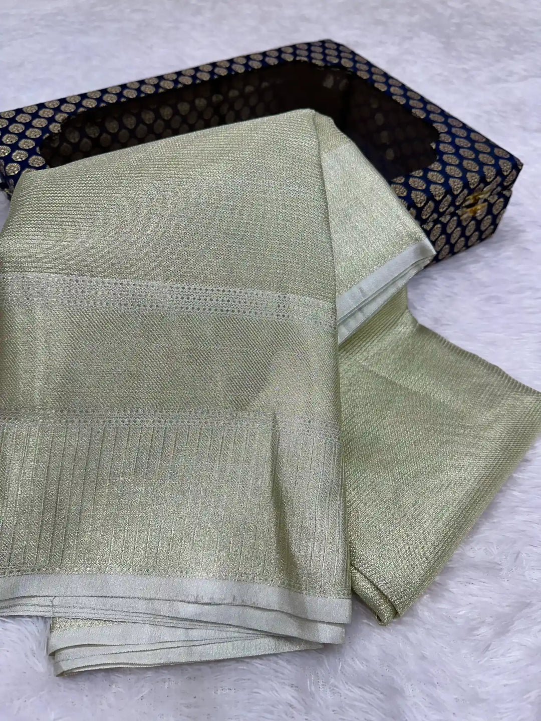 water tone tissue silk saree with rich zari pallu and exclusive border