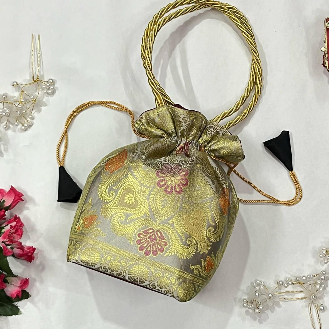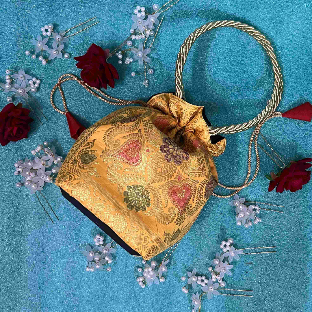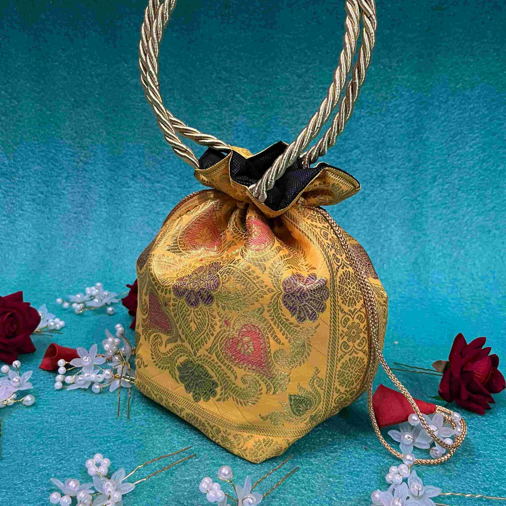 Indulge in the opulence of Banarasi handmade potli bags for women, meticulously crafted to perfection. Imbued with rich heritage and intricate details, each piece is a testament to timeless elegance. Elevate your accessory game and make a statement of tradition and style. Browse our website to discover the epitome of craftsmanship.