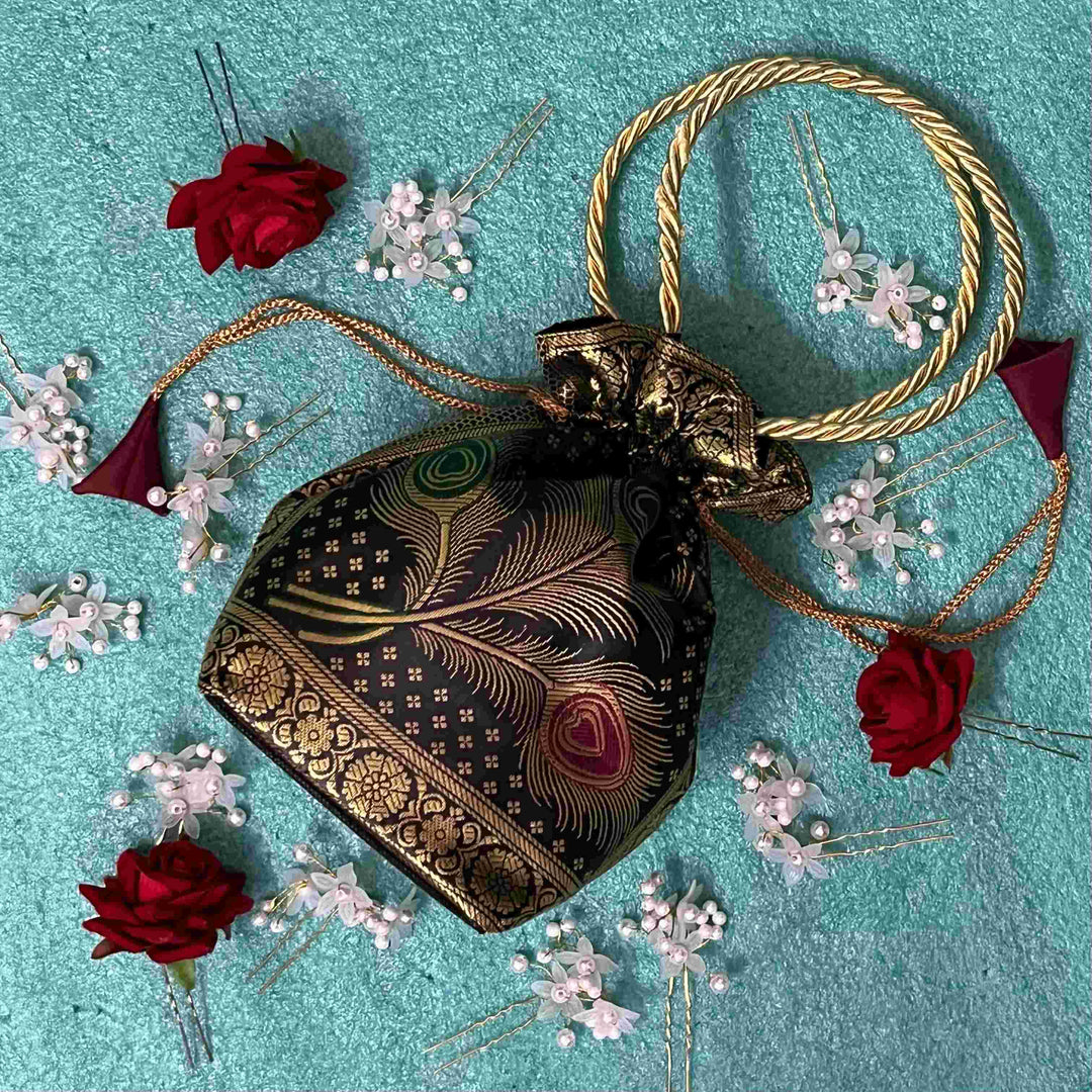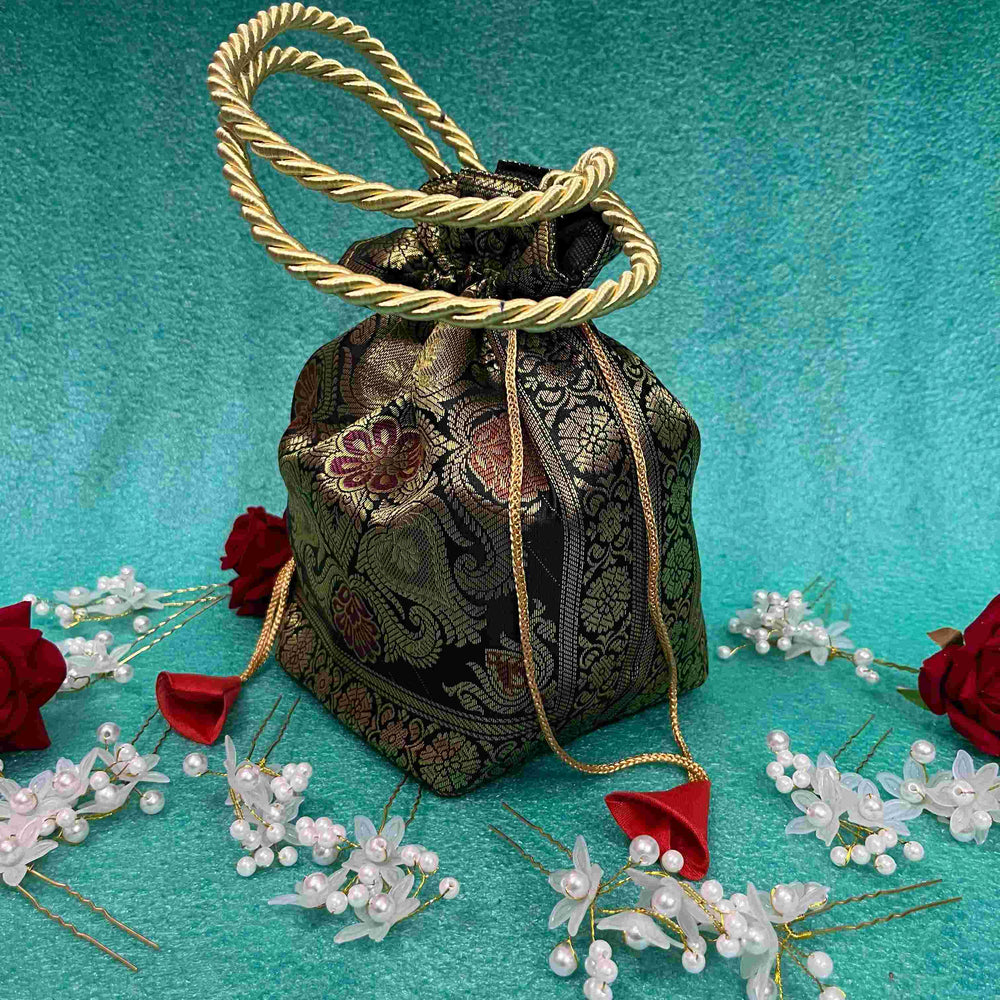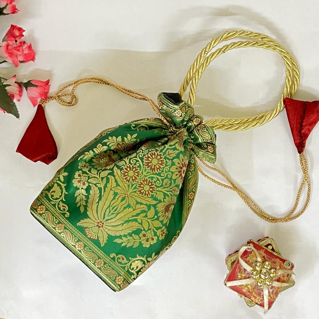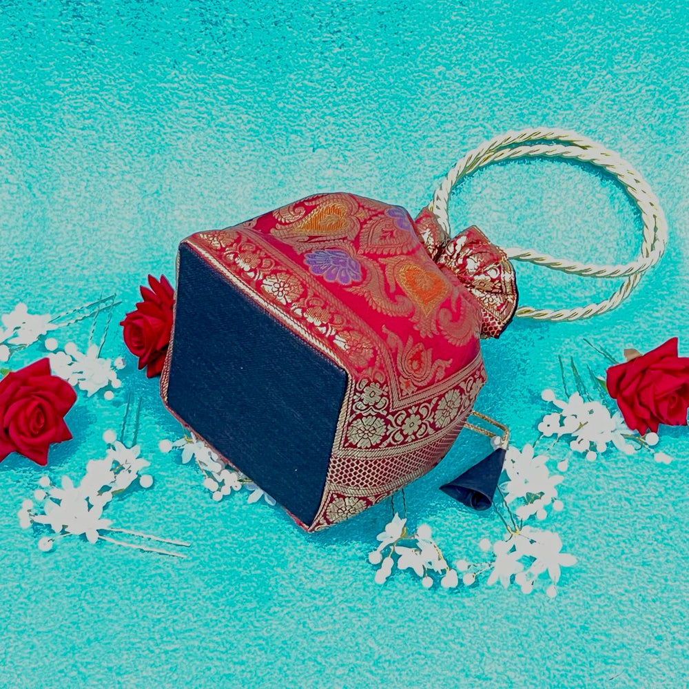 Indulge in the opulence of Banarasi handmade potli bags for women, meticulously crafted to perfection. Imbued with rich heritage and intricate details, each piece is a testament to timeless elegance. Elevate your accessory game and make a statement of tradition and style. Browse our website to discover the epitome of craftsmanship.