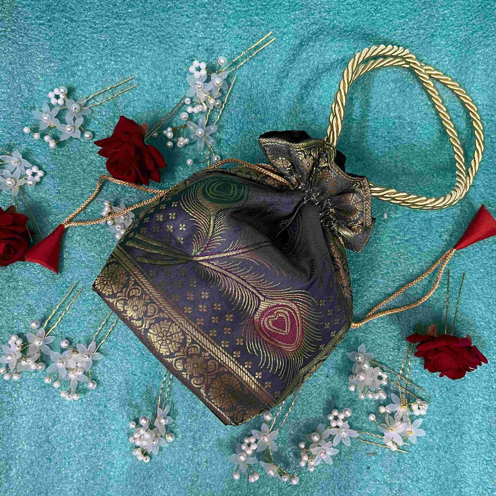 Discover ethnic handmade Banarasi potli bags and wallets on our website! Each piece is crafted with traditional Banarasi motifs, adding a touch of elegance to your accessory collection. Elevate your style with these unique and versatile pieces, perfect for any occasion. Shop now and add a touch of heritage to your wardrobe!