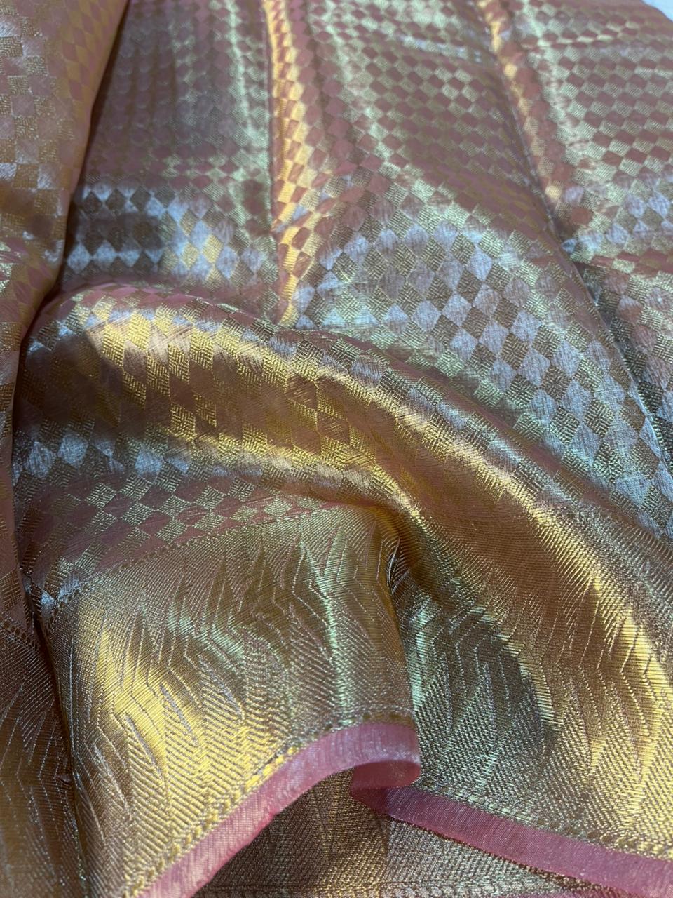 Dual Shaded Mauve Peach Glass Tissue Silk Banarasi Saree