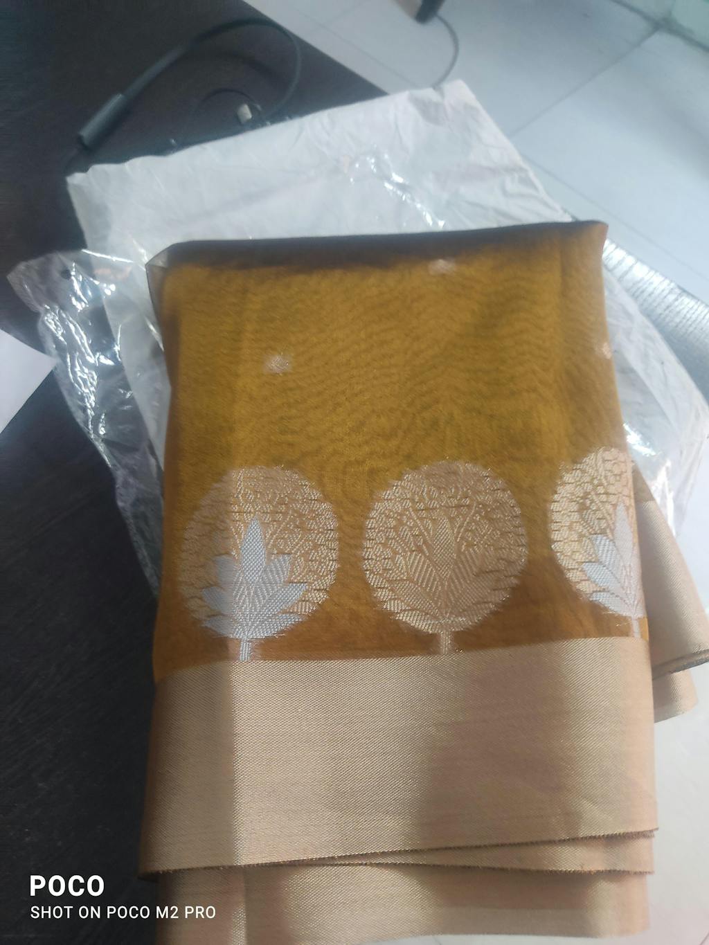 Elevate your ethnic wardrobe with this stunning Banarasi saree. Lustrous tissue silk infused with metallic gold threads creates an enchanting mustard-gold shimmer. Heritage weaving techniques ensure timeless elegance for weddings and celebrations.