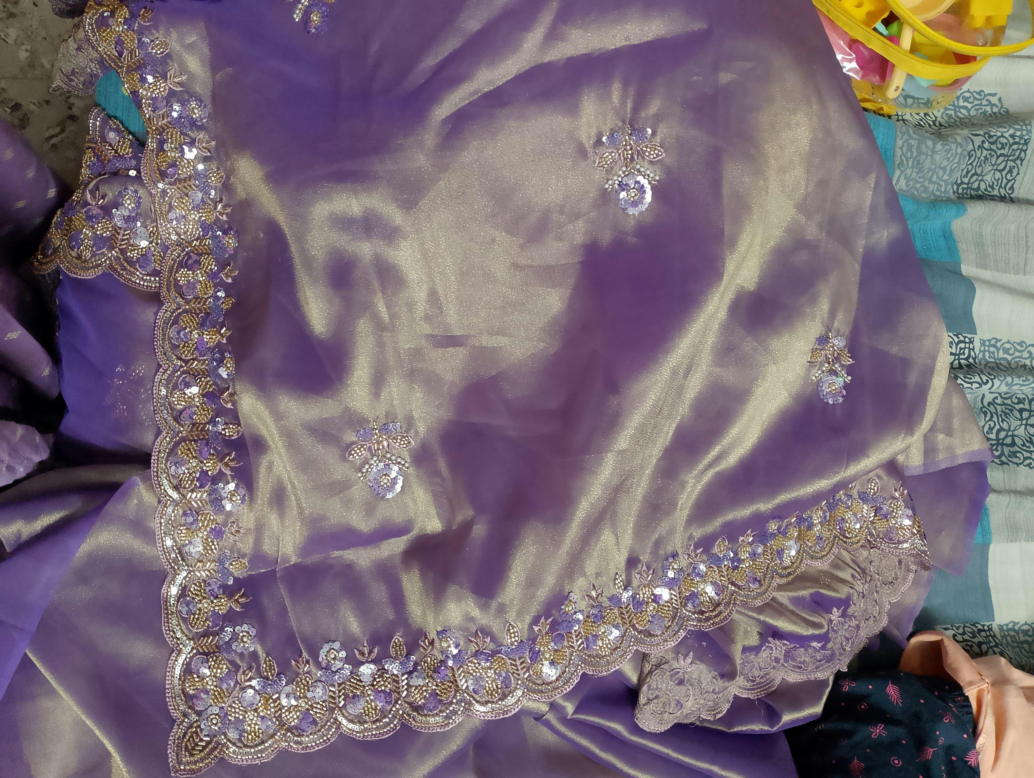 Purple Shimmery Tissue Silk Handwork Banarasi Saree