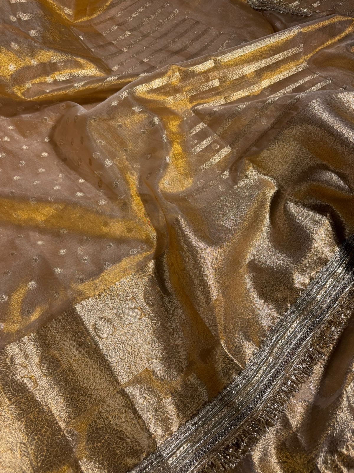 Copper Tissue Silk Eccentric Designer Lace Work Banarasi Saree