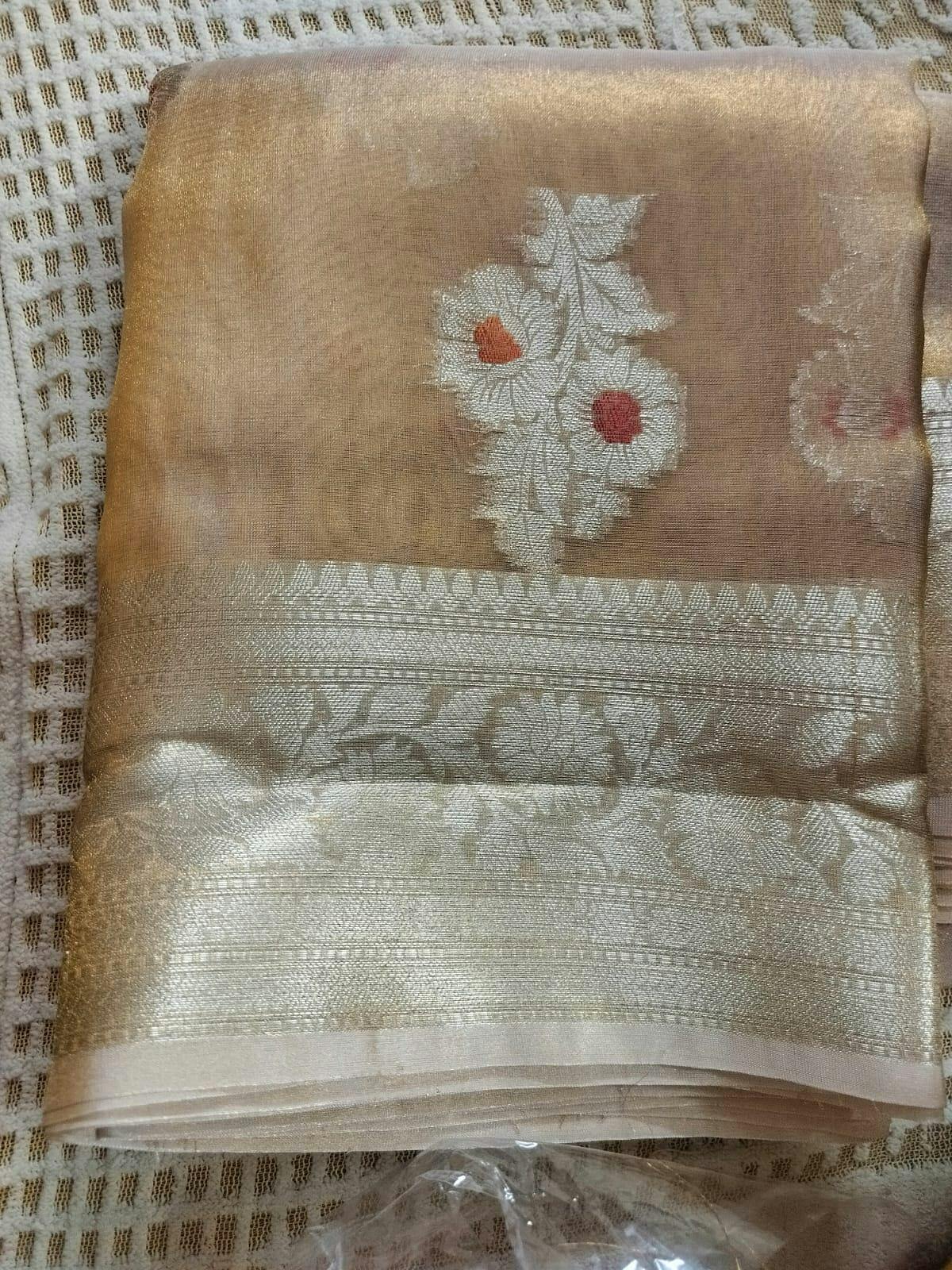 Copper Tissue Silk Saree with rich pallu and blouse