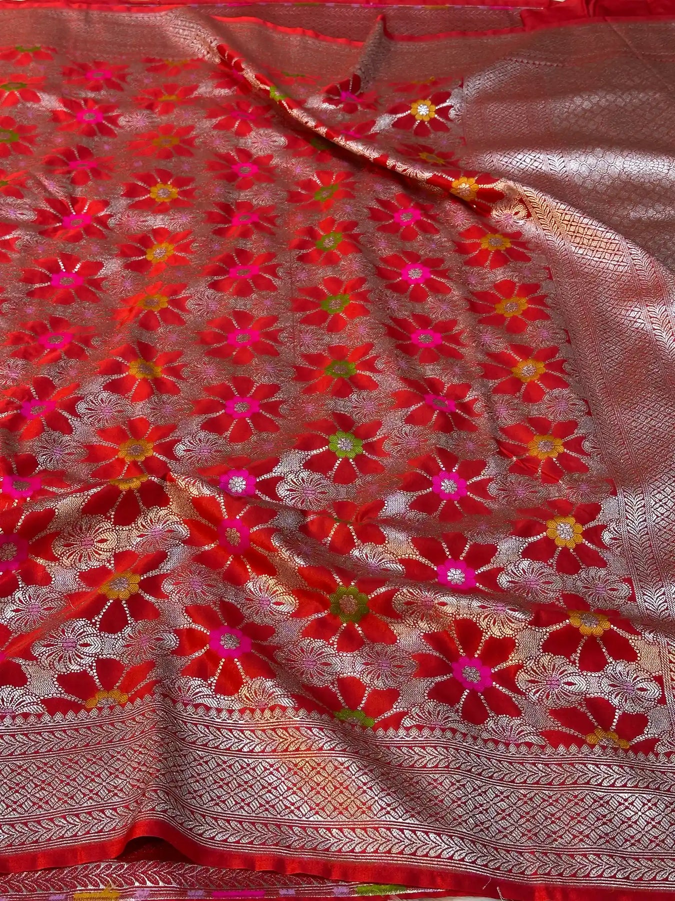 Bridal Red Mashru Katan Silk Eccentric Meenakari Banarasi Saree