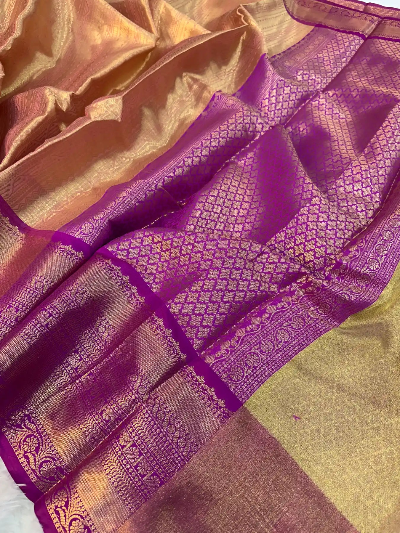 Dark Gold Kanjivaram Brocade Tissue Silk Banarasi Saree