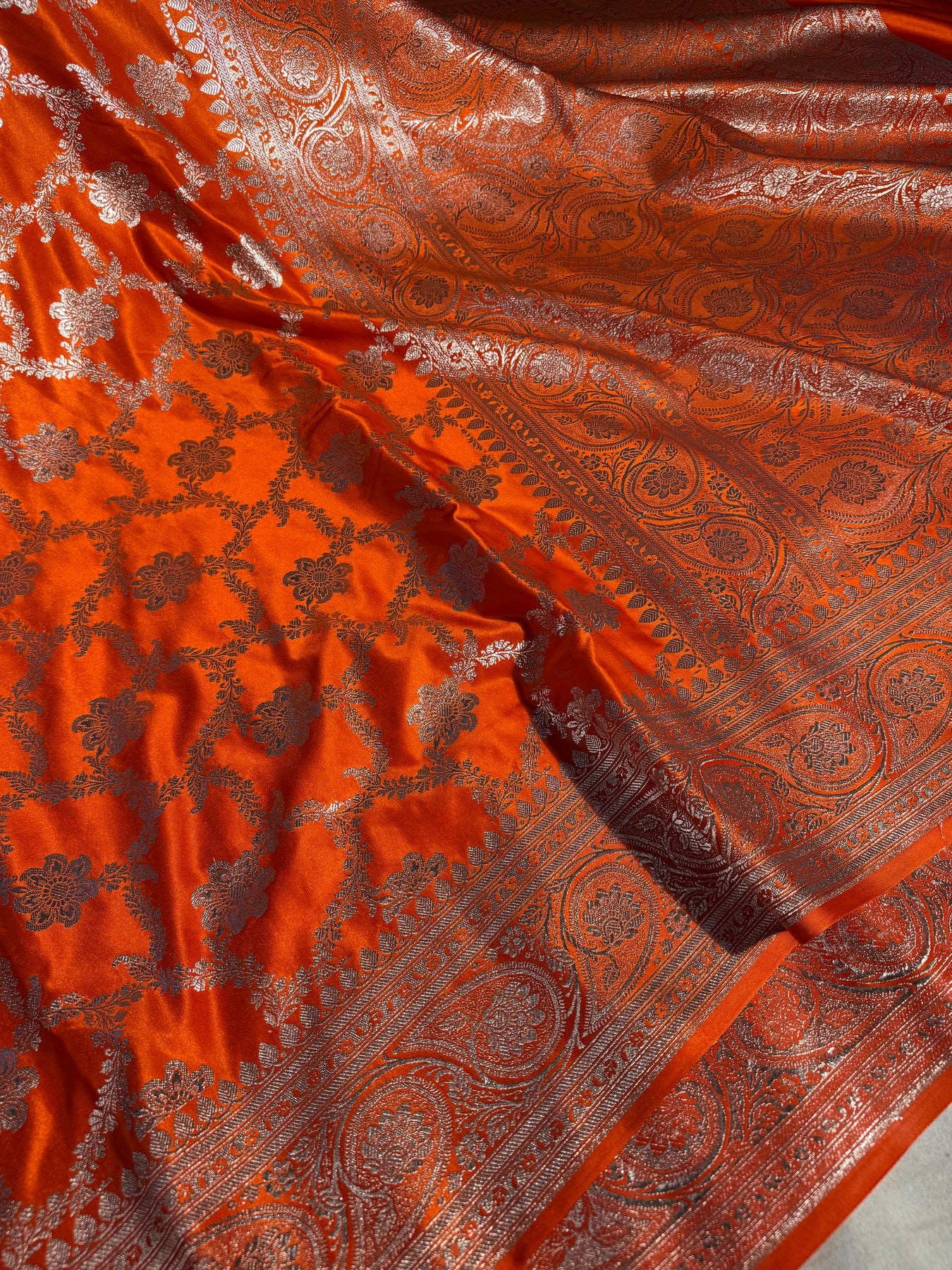 Cosmo Orange Satin Silk Heritage Banarasi Saree