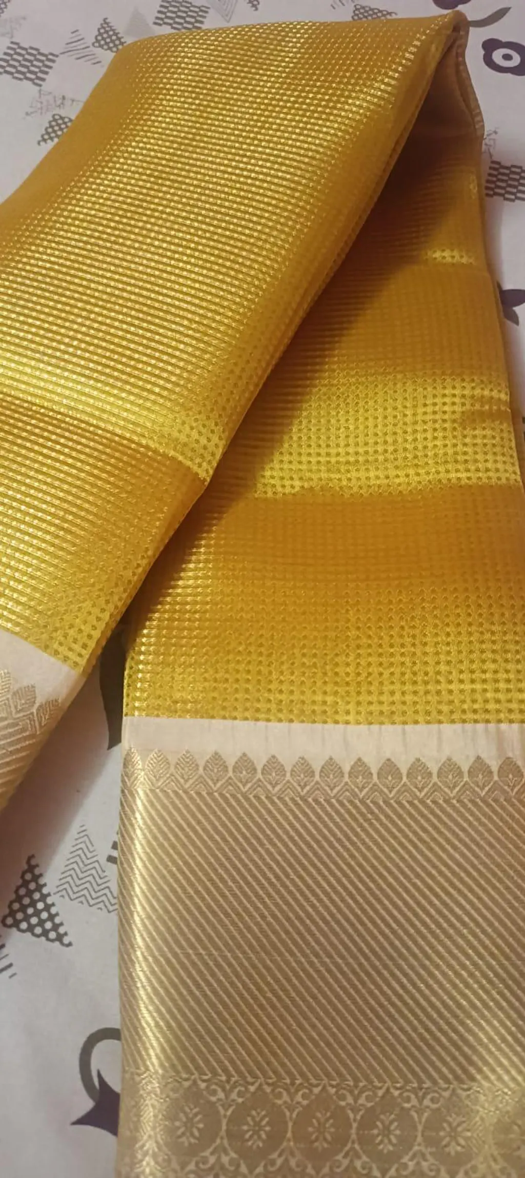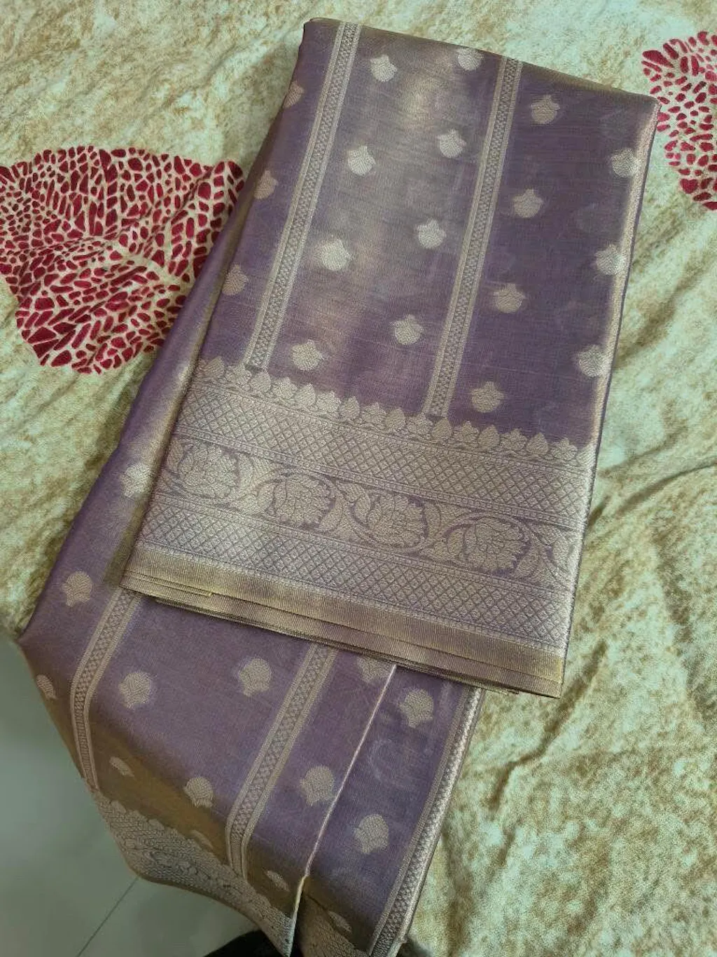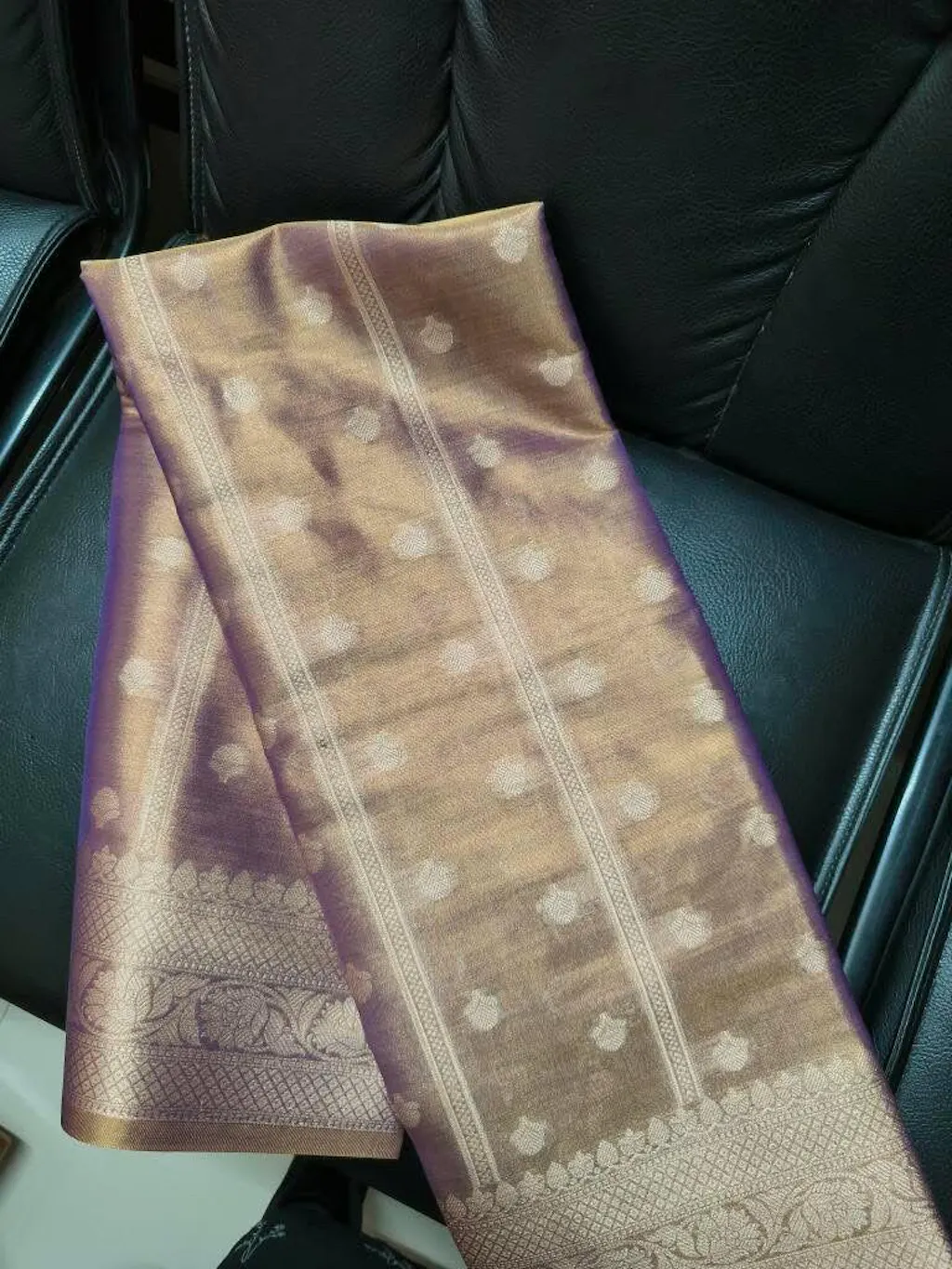 The fabric's crinkly texture gives it a refined structure, making it easy to style for both daytime ceremonies and evening functions. A rich pallu and a matching blouse piece complete the look, allowing for easy styling and a tailored fit.