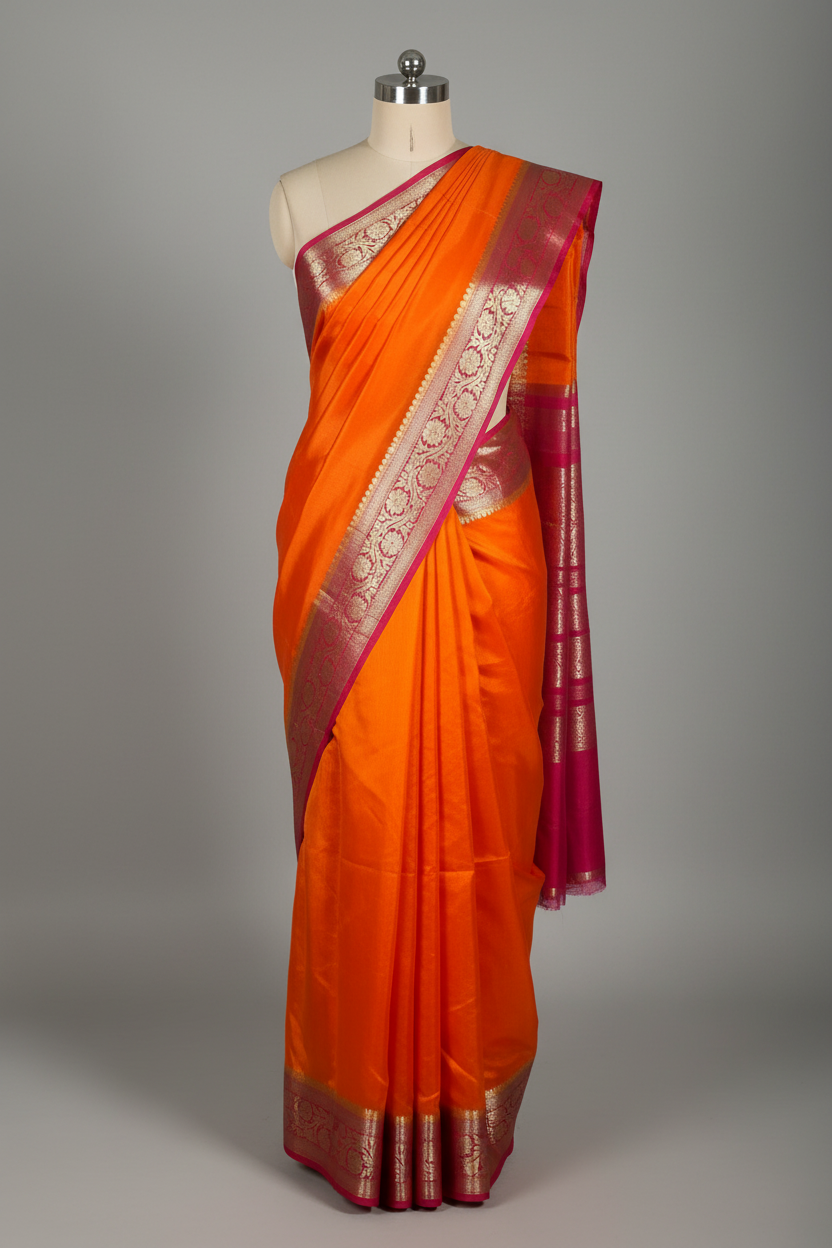 Mysore silk sarees from Karnataka are crafted from pure silk and feature intricate designs. These sarees are celebrated for their smooth texture and vibrant colors, making them a top choice for weddings and special occasions. Perfectly blending tradition and elegance, they add charm to any wardrobe.