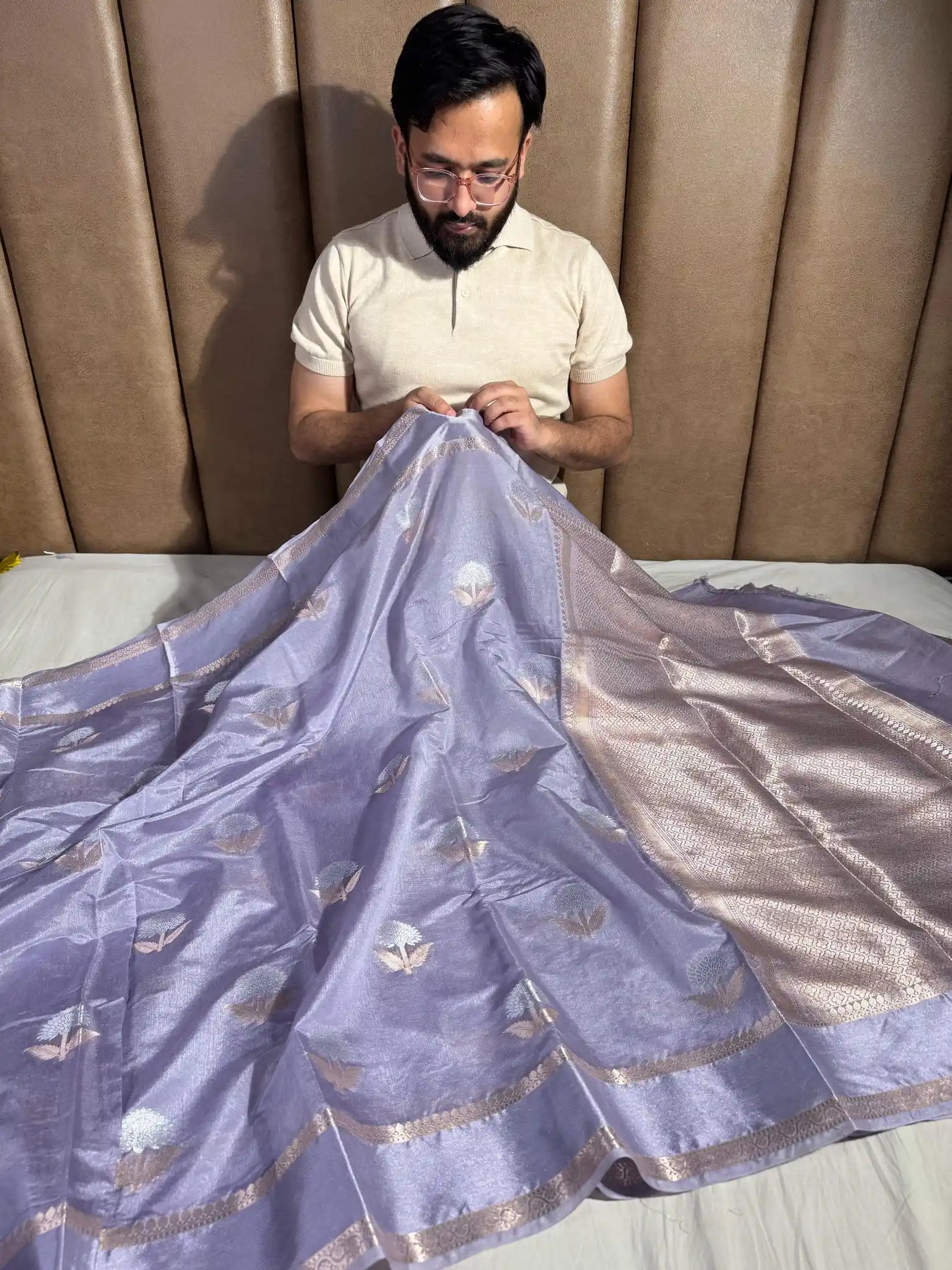 Light Lavender Chiniya Silk Flower Buta Banarasi Saree