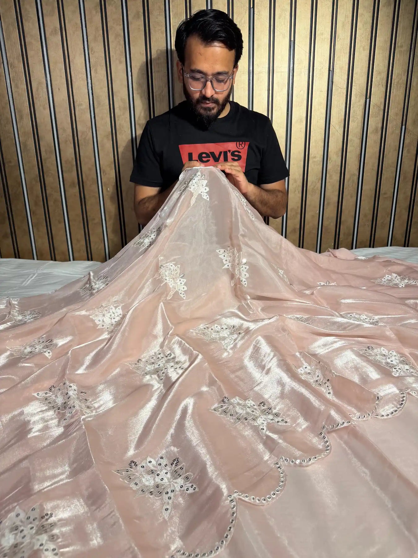 Pastel Peach Shimmery Tissue Silk Designer Saree