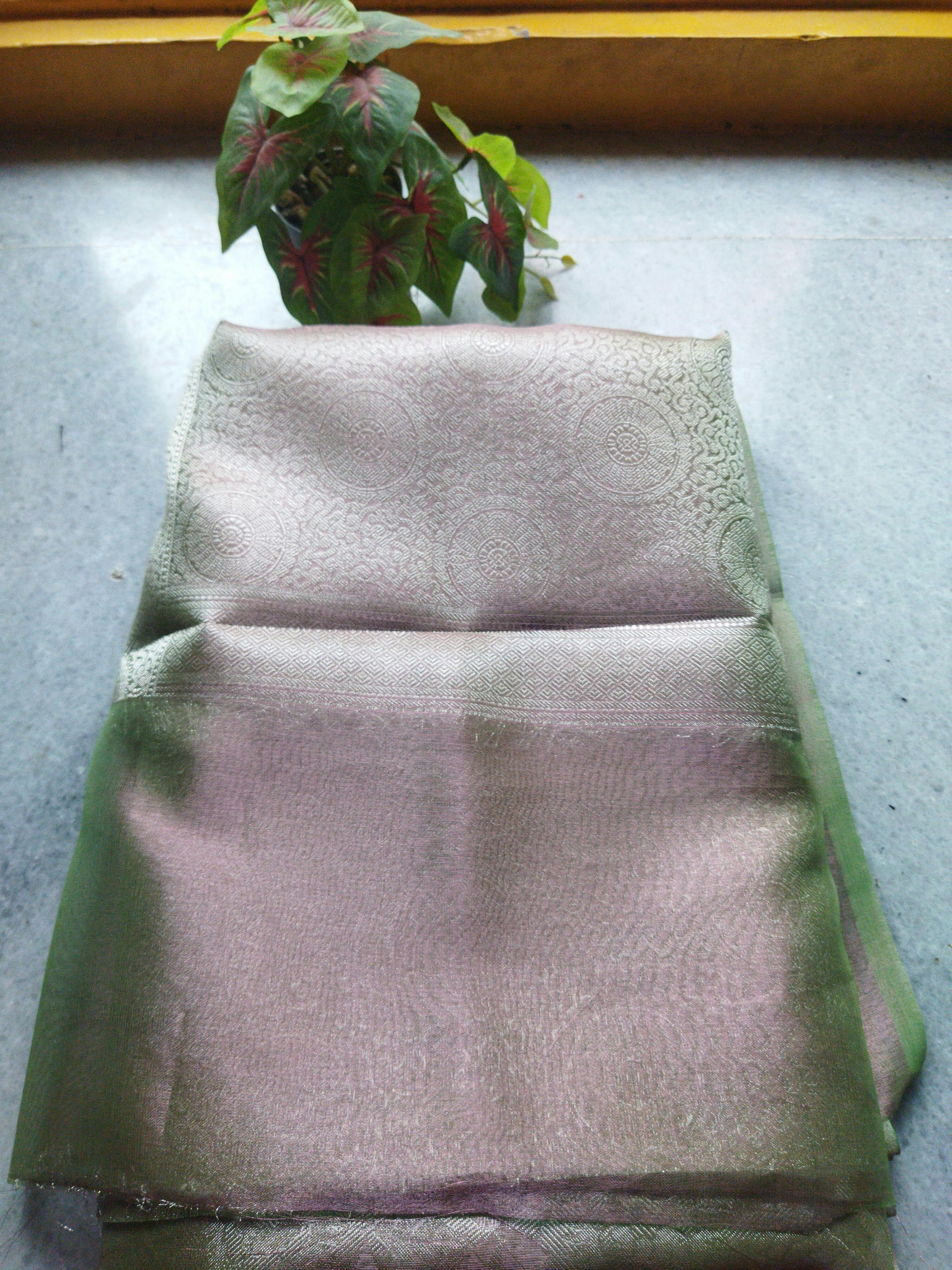 Yellow Shade Tissue Silk Saree with Heavy Lace Work