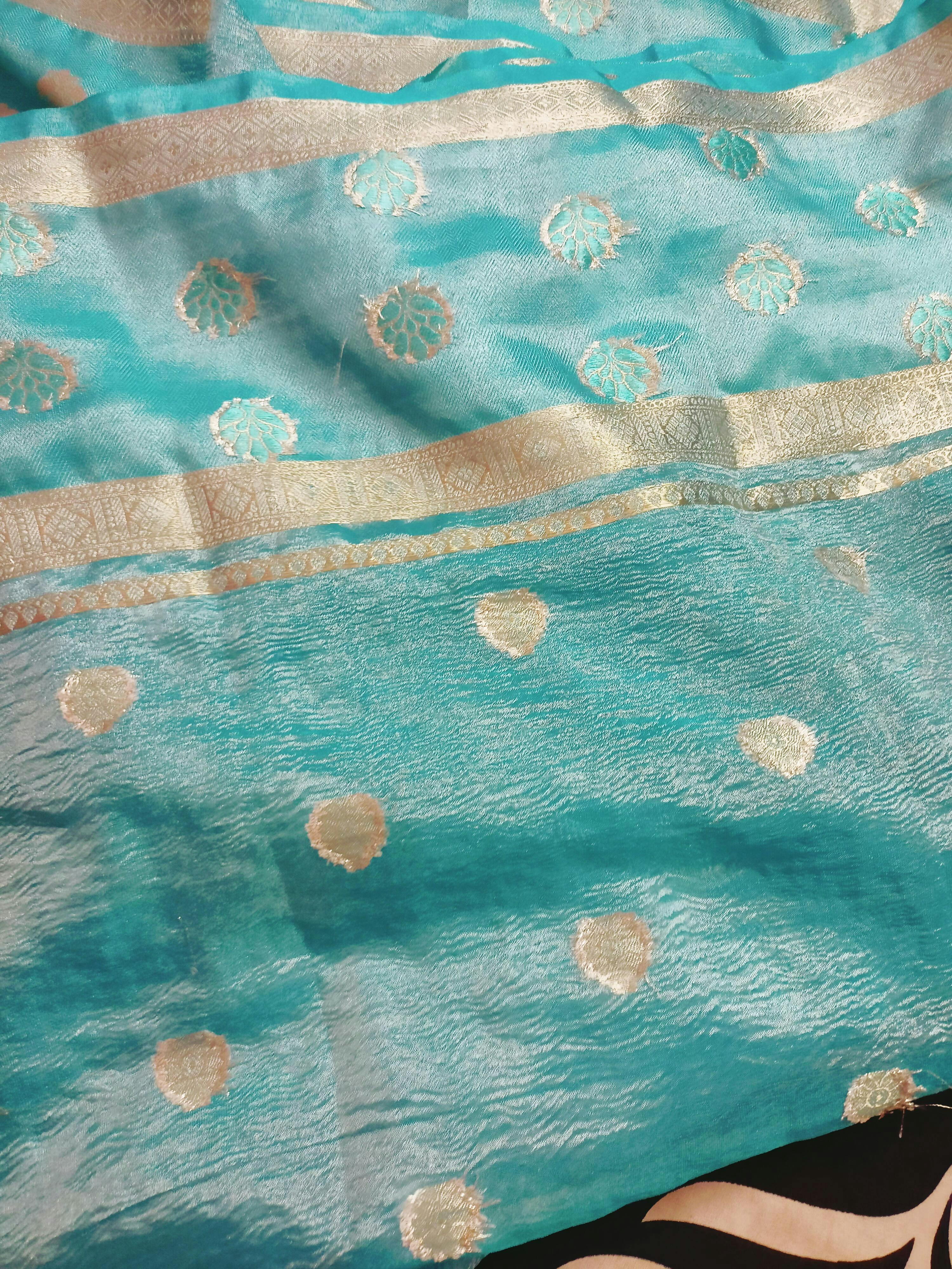 Soft Silk Banarasi Saree with silver zari woven ethnic motifs in the complete body and rich brocade pallu and blouse