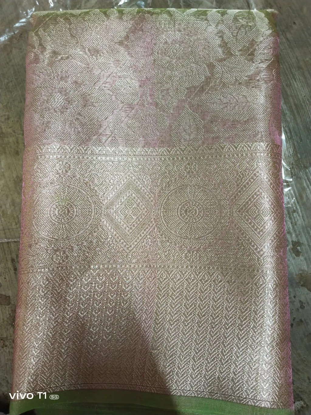 Introducing our never-seen-before copper tissue silk saree with a stunning floral rich pallu. Made with high-quality material, this saree is perfect for any occasion. Enjoy the luxurious feel of silk while making a statement with the unique copper color and intricate floral design. Be the center of attention in this one-of-a-kind saree.