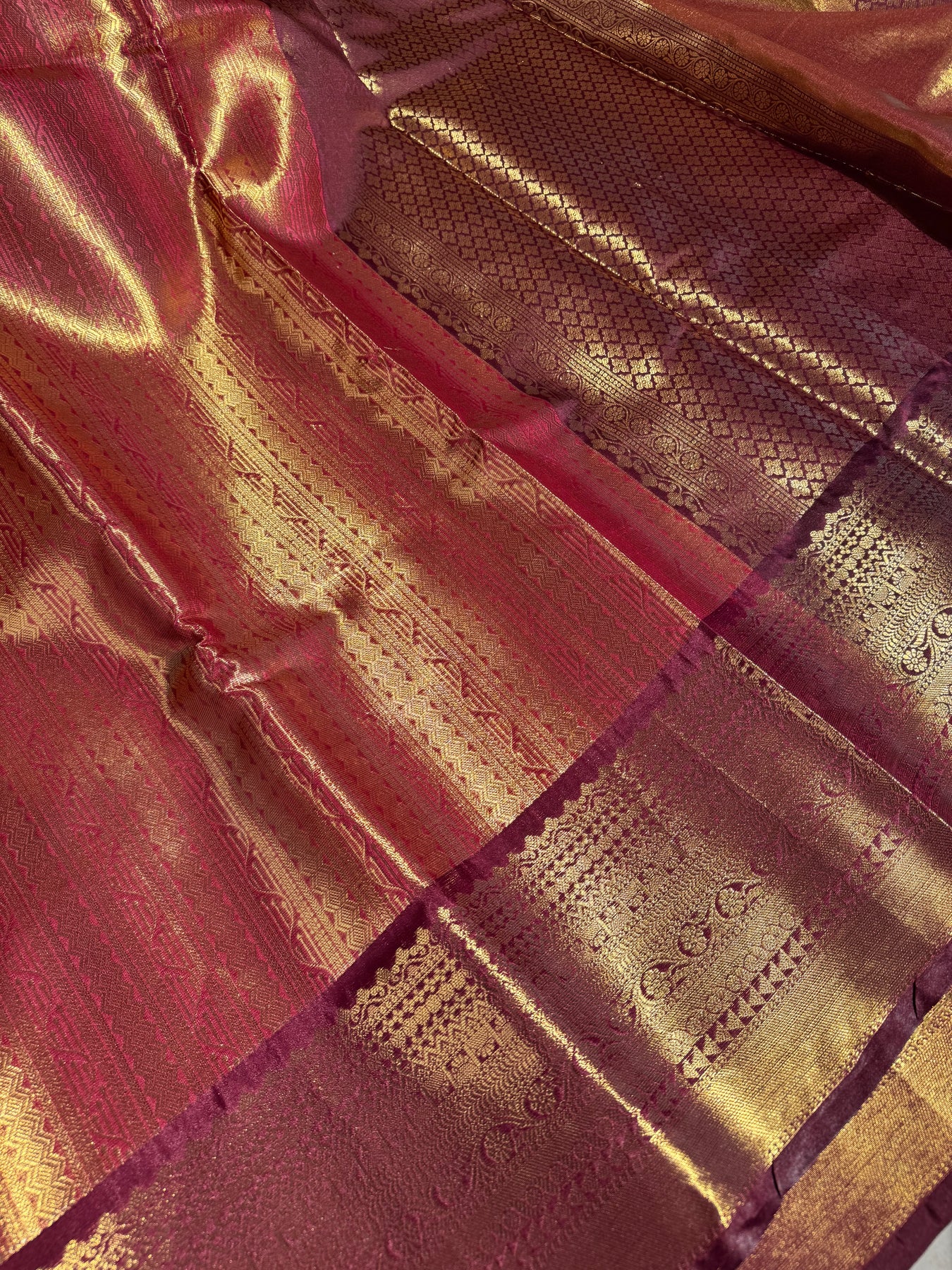 This bold saree features intricate embossed patterns on luxurious tissue silk, inspired by Nita Ambani's elegance. Stand out with its rich texture and commanding presence for unforgettable occasions.