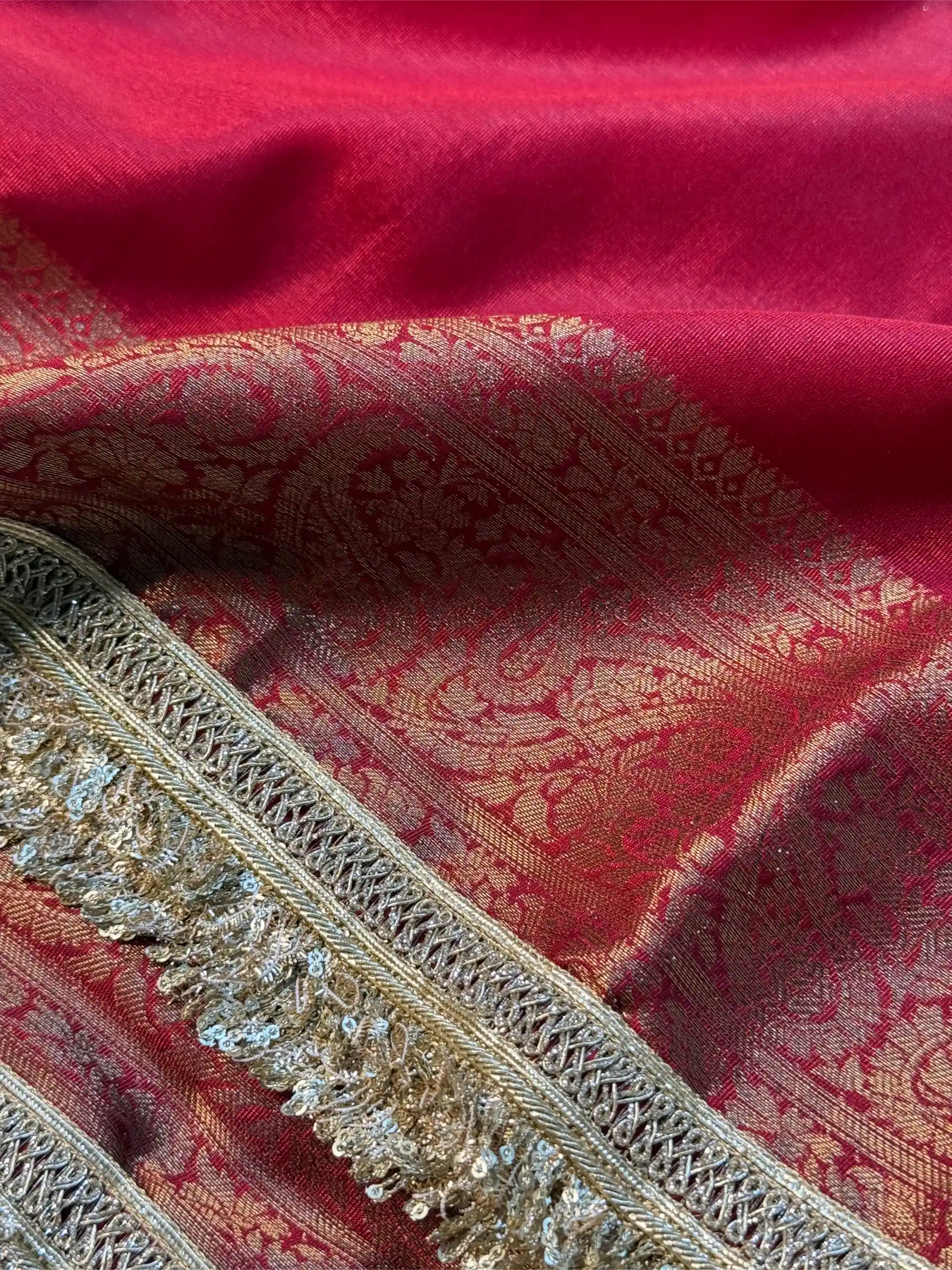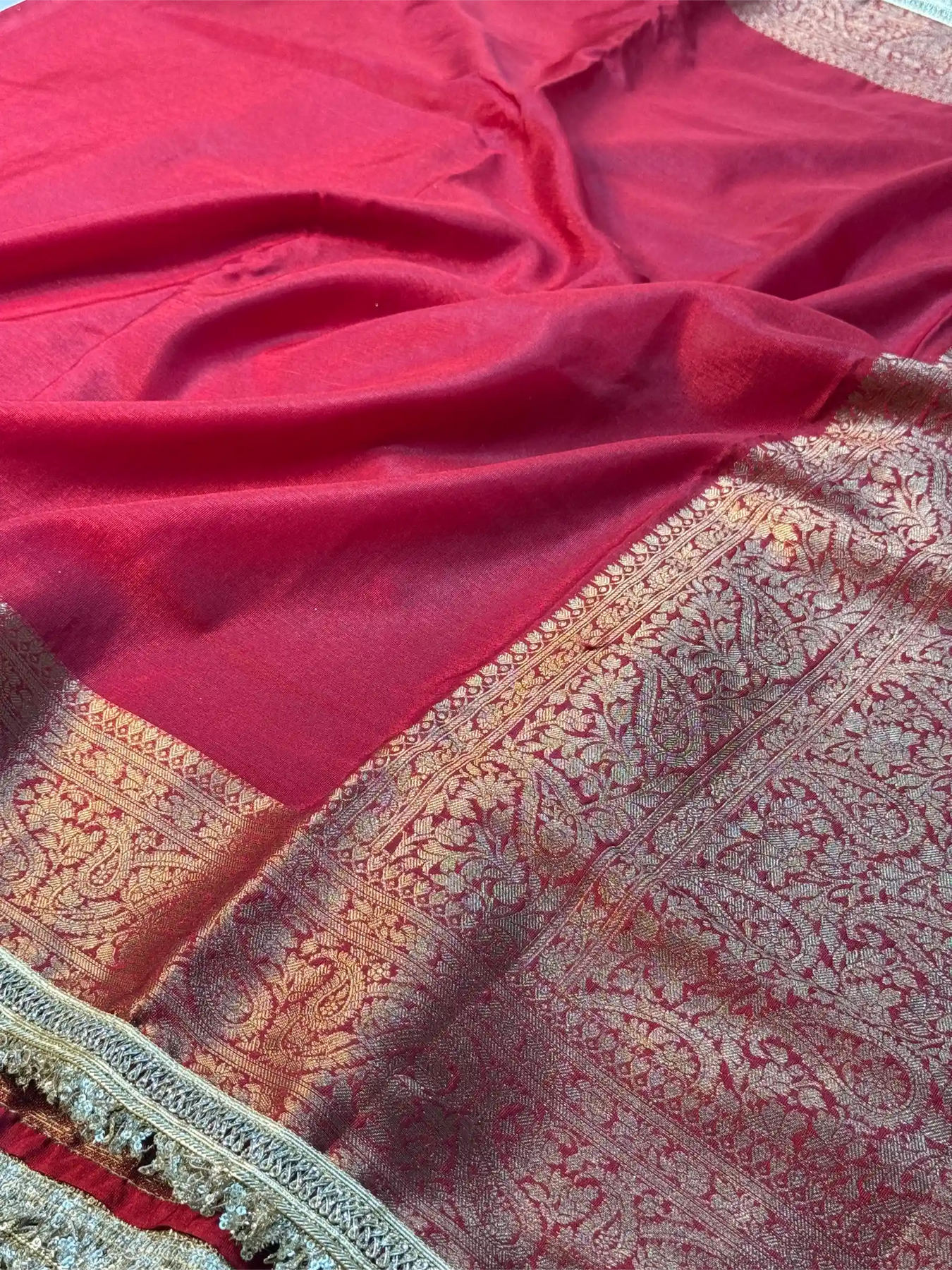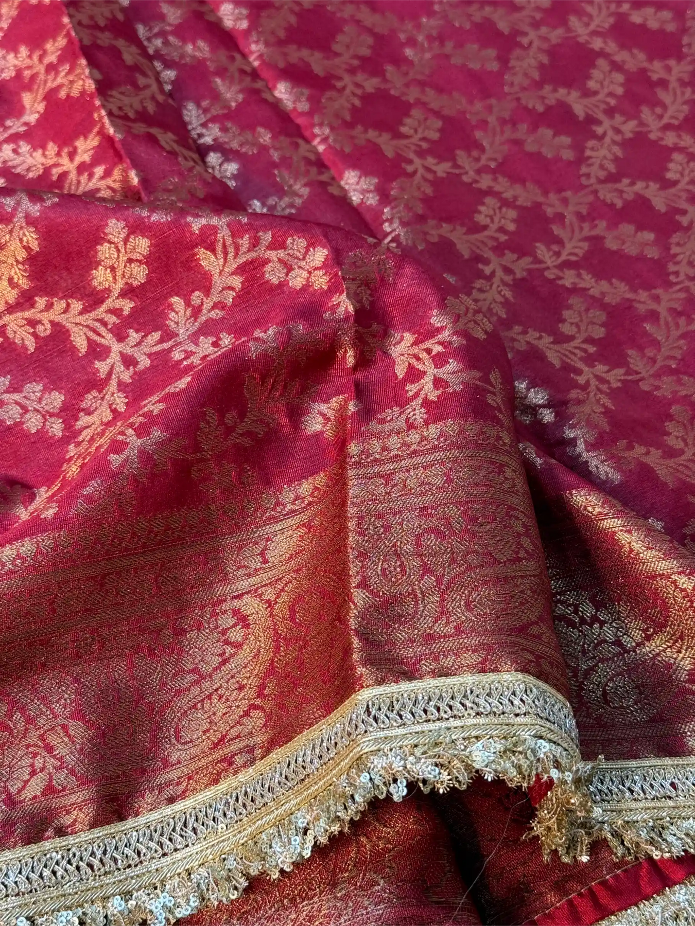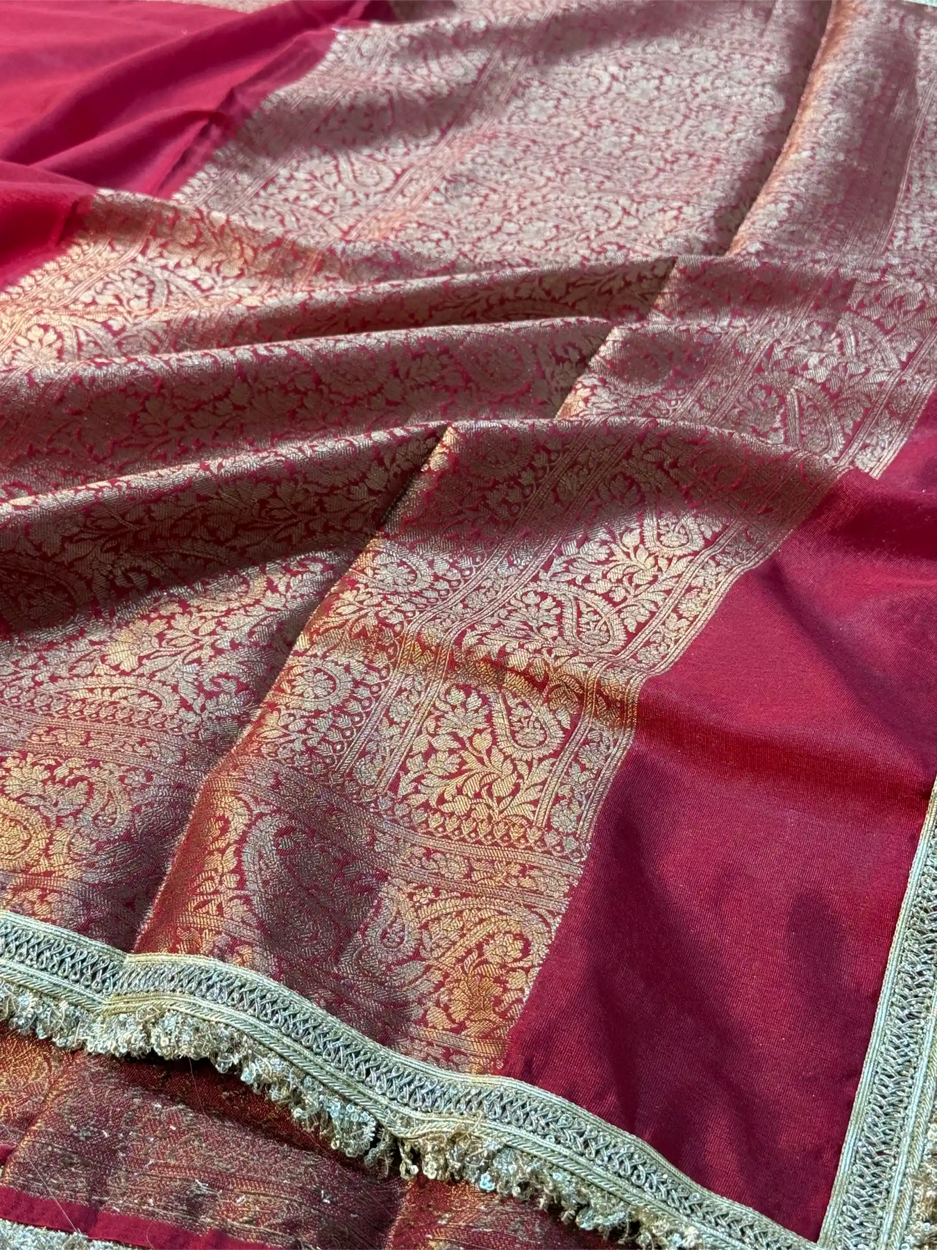 Wrap yourself in the playful charm of this Light Maroon Warm Silk Banarasi Saree, where rich texture meets vibrant tradition for effortless elegance and fun at every occasion.