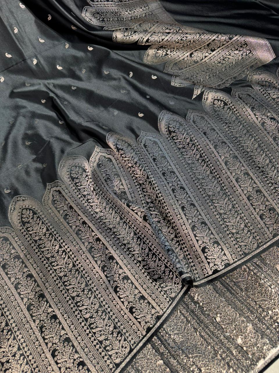 Black Banarasi Mashru Katan Silk saree with rich pallu and makbara unique border