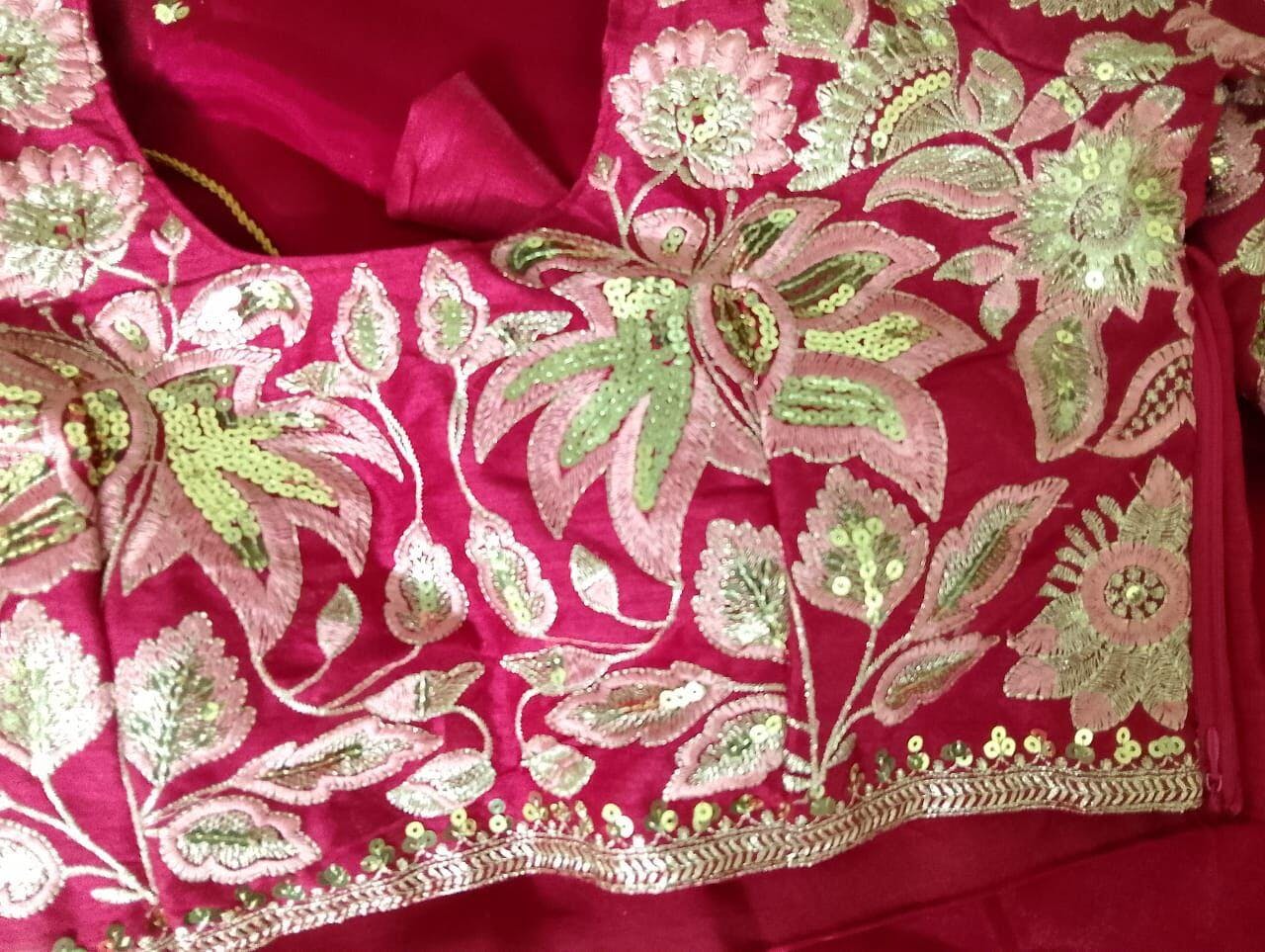 Elevate your bridal look with our stunning Bridal Red Shimmery Organza Designer Saree. Made with high-quality organza fabric, this saree features a shimmery red hue that adds a touch of elegance to your special day. Pair with minimal jewelry for a classic yet glamorous look.