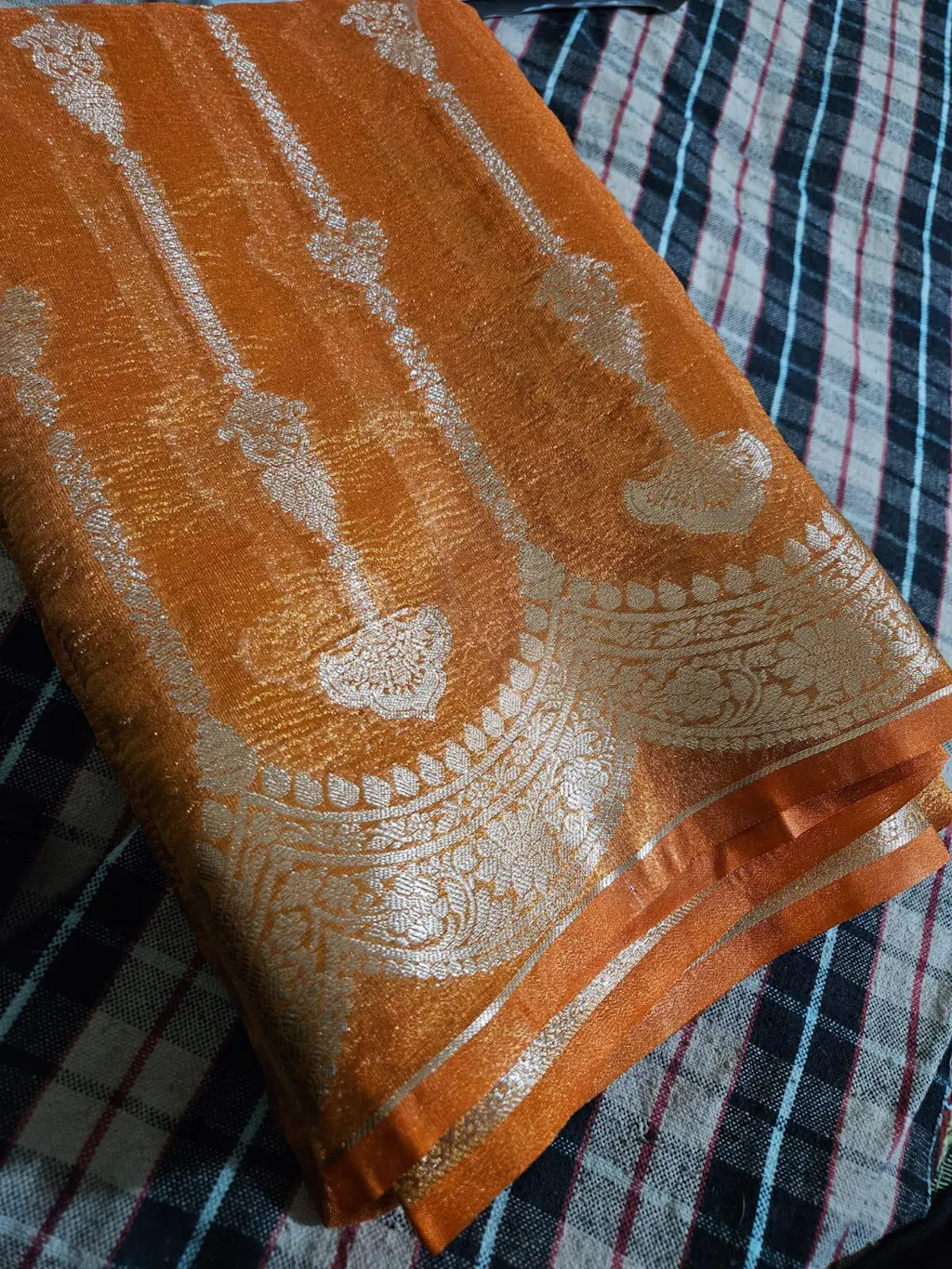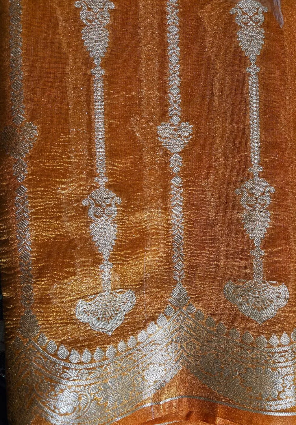 Rust Orange Crush Tissue Silk Banarasi Saree