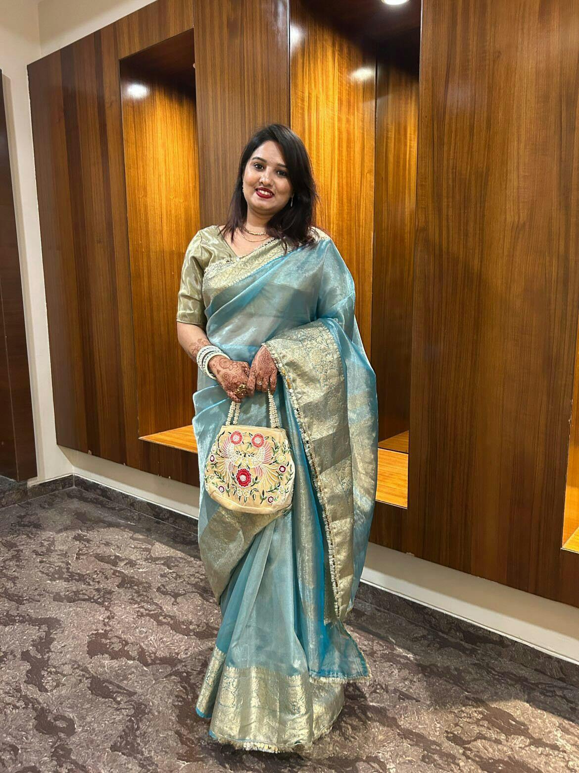 Aqua Green Janhvi Kapoor Inspired Tissue Silk Saree